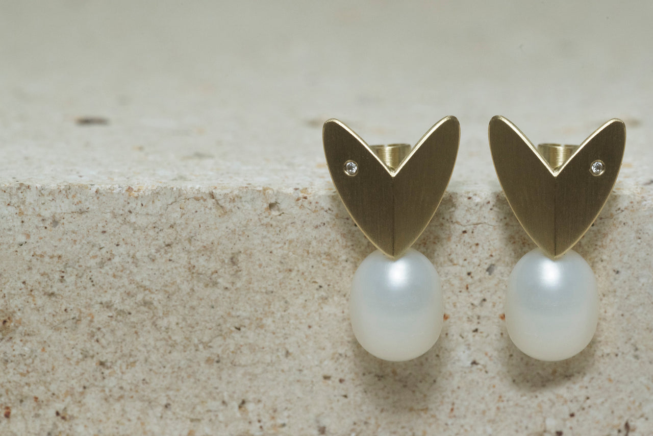 Brinco Herz Invertido • Ouro Amarelo 18K, pérola barroca e 2 diamantes 0,005ct